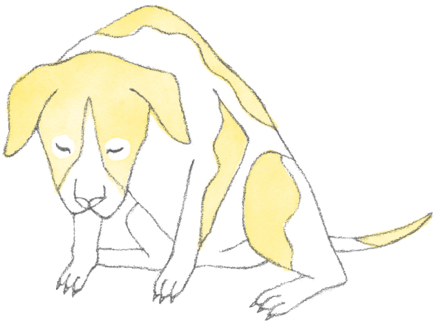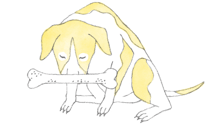 川の中には、肉を失ってしょんぼりした犬が写っていました。