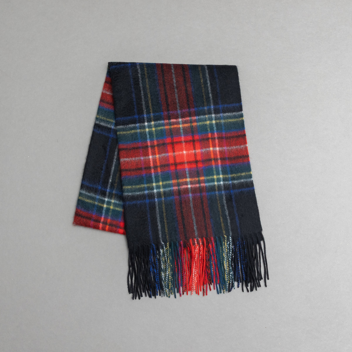 深い黒と赤のタータンチェック。光が当たると少しだけ模様が浮かぶのが特徴です。寒い冬の夜道、これを巻いて歩きたいと思います。