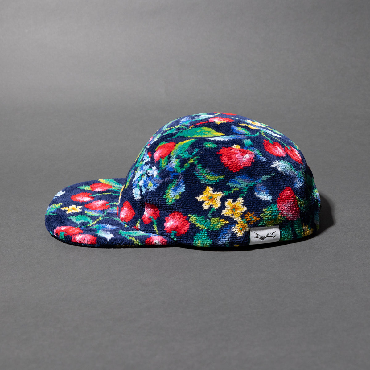 その名の通り、チェリーのデザインのキャップです。花も入っていたり、見ているだけで華やかな気分に。