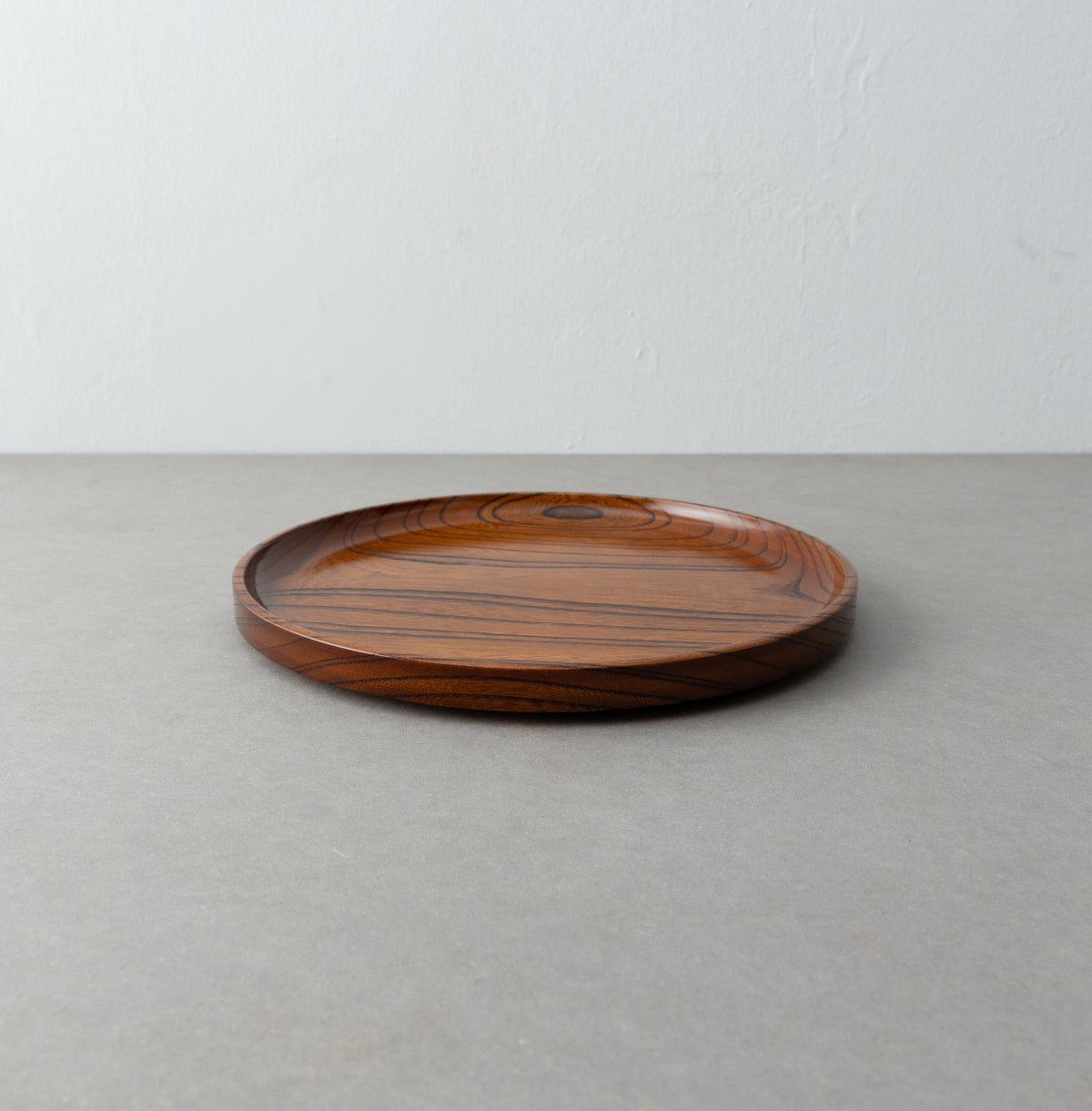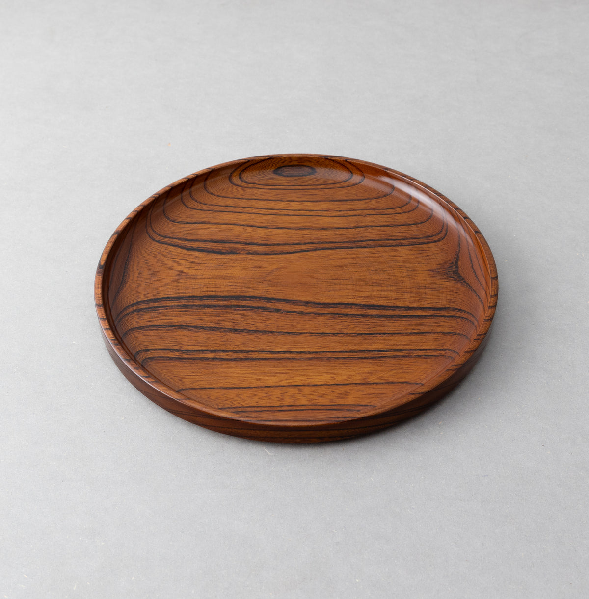 サイズ:φ24 x 2 cm 樹種名:ケヤキ(国産) 塗装方法:漆塗装