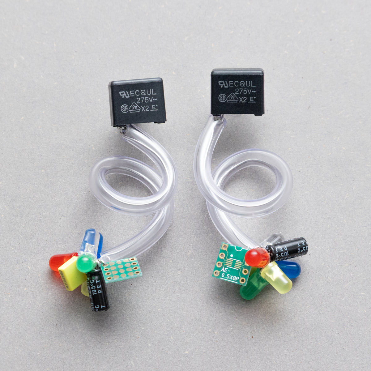 うねうねのコードと電子部品を組み合わせてつくった一輪の花びらです。