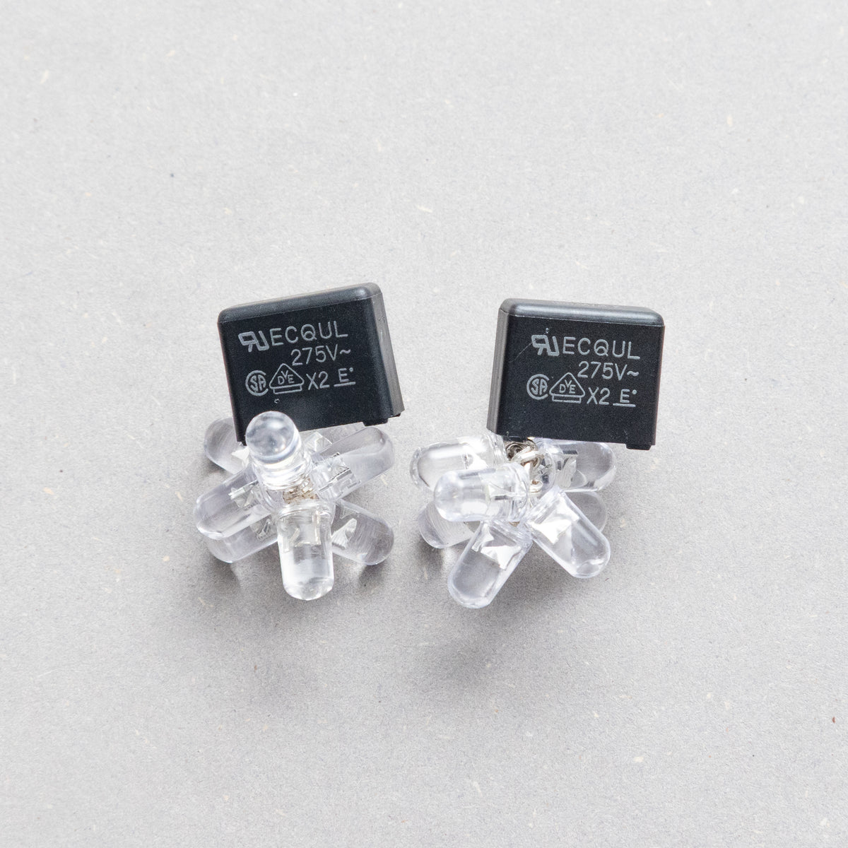 電子部品のクリアの花びらに、ブラックのパーツを花瓶として添えました。